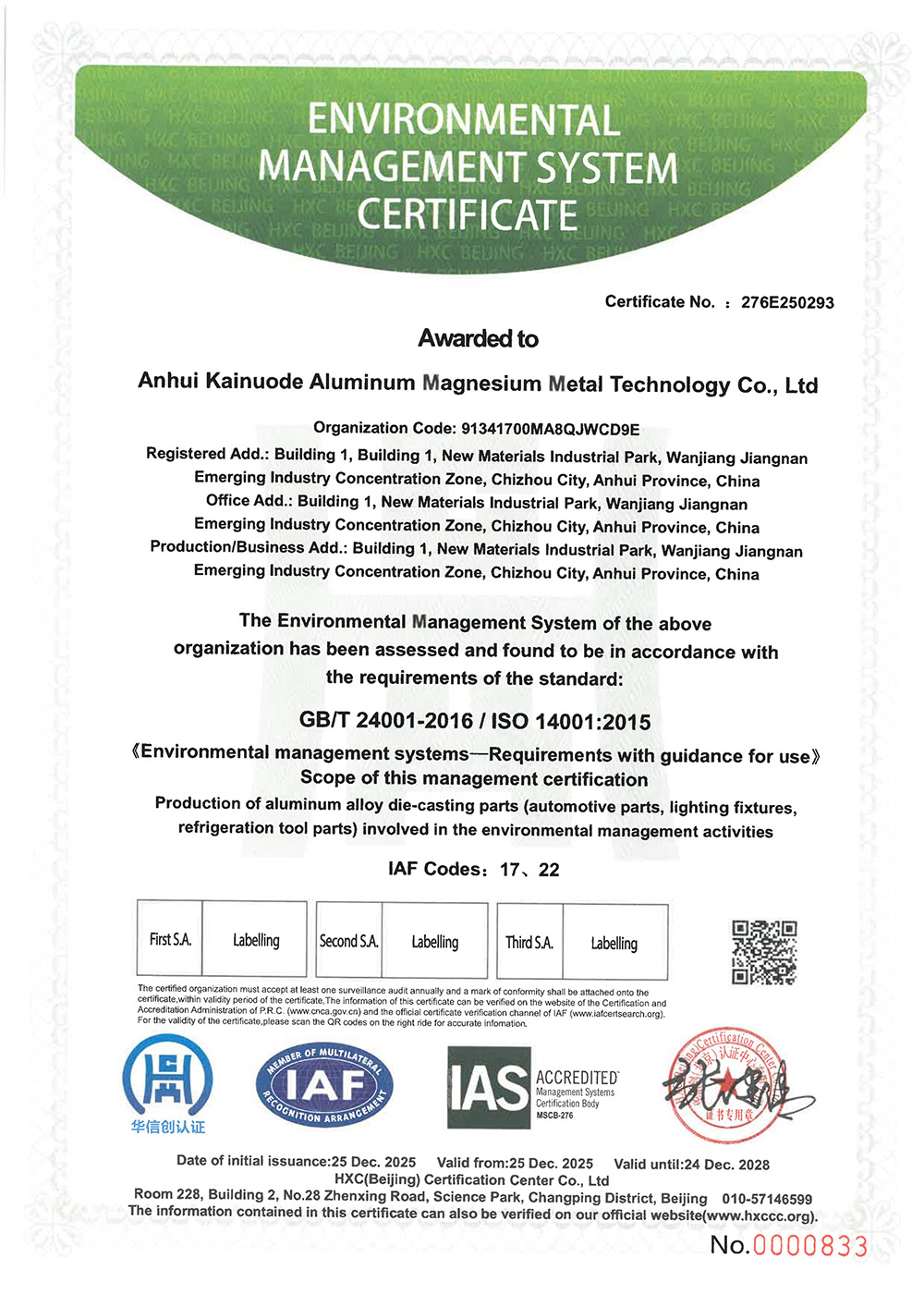ENVIRONMENTAL MANAGEMENT SYSTEM CERTIFCATE